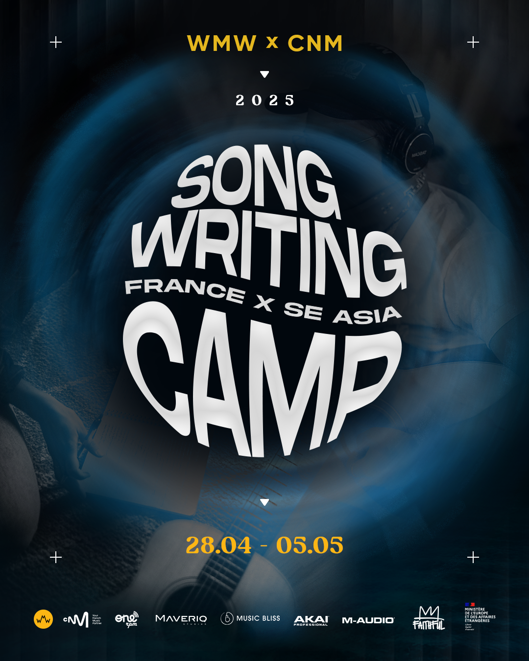 Suite à un appel à candidatures, lancé par le Centre national de la musique en association avec Wired Music Week et avec le soutien de l’Ambassade de France à Singapour, de ONErpm, de l’Alliance française de Kuala Lumpur et de l’Ambassade de France en Malaisiesix artistes (auteurs, autrices, compositeurs, compositrices, topliners, producteurs et productrices de musique pop ou « urbaines ») ont été sélectionnés pour participer à un songwriting camp aux côtés de six artistes, auteurs, autrices, compositeurs, compositrices de la région de l’Asie du Sud-Est. Cette rencontre aura lieu du 29 avril au 5 mai dans les Maveriq Studios à Petaling Jaya.